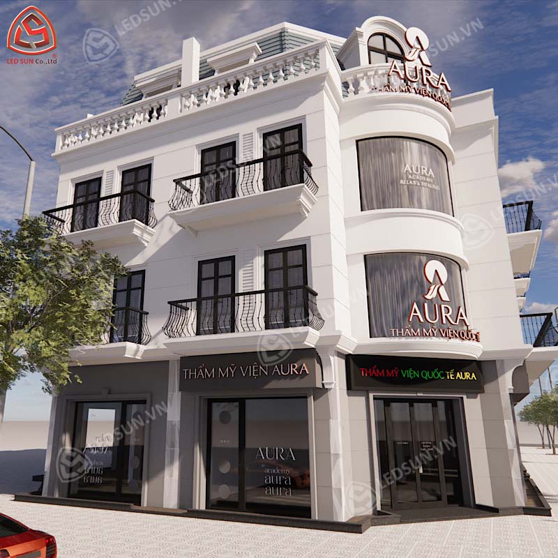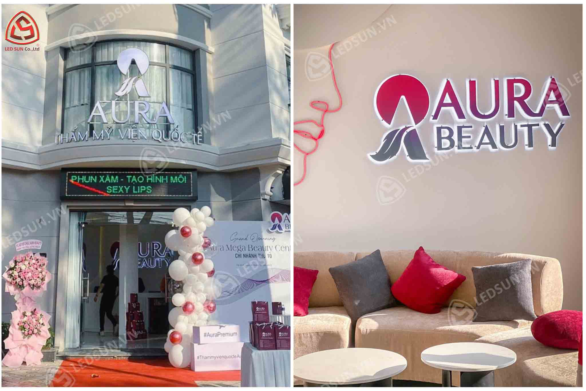 Led Sun hân hạnh đảm nhận thiết kế và thi công toàn bộ hệ thống quảng cáo cho Hệ thống Thẩm Mỹ Viện Aura, với thời gian thực hiện kéo dài 3 tháng. Dự án bao gồm các hạng mục quan trọng như bảng hiệu lớn, logo nổi bật, và hệ thống chiếu sáng LED hiện đại, được thiết kế để làm nổi bật phong cách hiện đại và sang trọng . Với sự đầu tư kỹ lưỡng từ ý tưởng đến hoàn thiện, Led Sun đã giúp Aura nâng tầm hình ảnh thương hiệu, tạo điểm nhấn ấn tượng trong lĩnh vực làm đẹp.