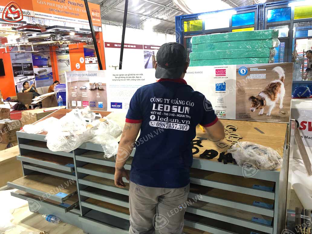 Led Sun tự hào hoàn thành dự án thiết kế thi công hội chợ triển lãm, bao gồm các gian hàng trưng bày và background sự kiện chuyên nghiệp. Chúng tôi chú trọng từng chi tiết từ ý tưởng thiết kế sáng tạo, lựa chọn vật liệu chất lượng cao đến thi công chính xác, đảm bảo đáp ứng yêu cầu thẩm mỹ và công năng. Các gian hàng được thiết kế với phong cách hiện đại, không gian tối ưu, tạo điểm nhấn thương hiệu và thu hút sự chú ý của khách tham quan. Background triển lãm nổi bật với bố cục tinh tế, sử dụng ánh sáng LED hiệu quả, giúp truyền tải thông điệp một cách sống động. Dự án không chỉ là sự kết hợp hài hòa giữa thiết kế và kỹ thuật mà còn là cam kết của Led Sun trong việc mang lại trải nghiệm ấn tượng và chuyên nghiệp cho khách hàng.