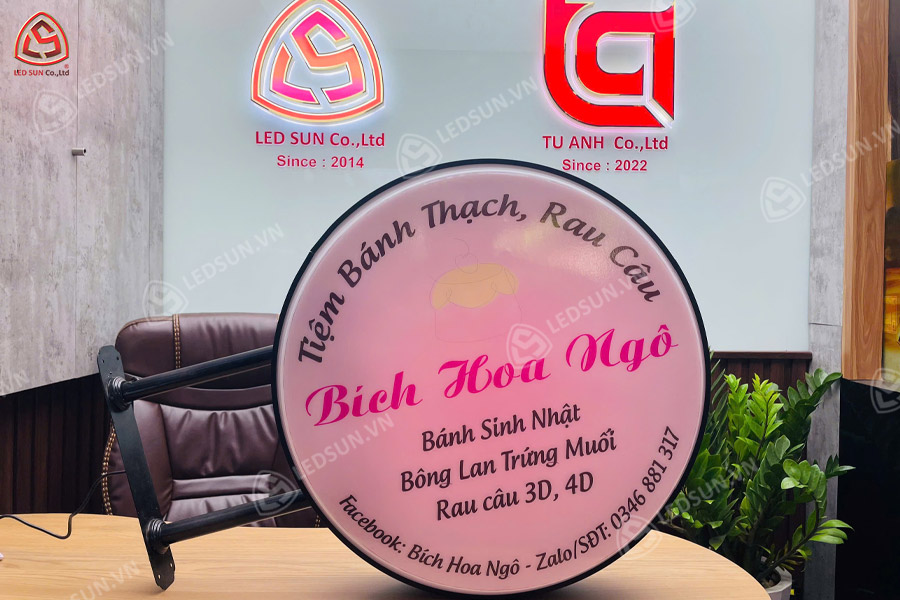 – Độ bền cao: Sử dụng mica hoặc PVC cao cấp cùng khung kim loại chắc chắn, hộp đèn hút nổi chịu được mưa nắng, tia UV và giữ được màu sắc, độ sáng lâu dài.